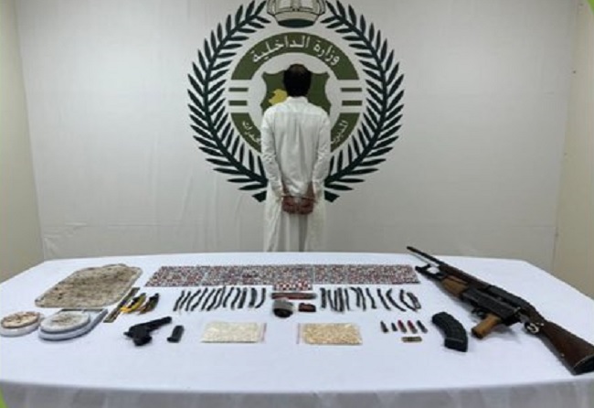 قبضت المديرية العامة لمكافحة المخدرات على مواطن بمنطقة حائل، لترويجه عبر مواقع التواصل الاجتماعي مادة الإمفيتامين المخدر ومادة الحشيش المخدر وأقراصاً خاضعة لتنظيم التداول الطبي، وضبط بحوزته أسلحة نارية، وجرى إيقافه واتخاذ الإجراءات النظامية بحقه، وإحالته إلى النيابة العامة.