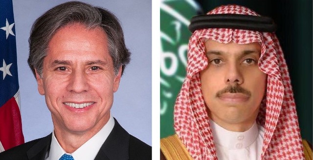 تلقى صاحب السمو الأمير فيصل بن فرحان بن عبدالله وزير الخارجية، اتصالاً هاتفيًا، اليوم، من معالي وزير خارجية الولايات المتحدة الأمريكية أنتوني بلينكن.
