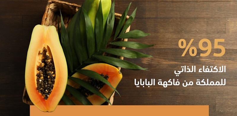 كشفت وزارة البيئة والمياه والزراعة، أن الإنتاج السنوي لفاكهة البابايا بالمملكة تجاوز 4.717 آلاف طن، محققة بذلك اكتفاءً ذاتيًا منه بنسبة 95%، فيما بلغت وارداتها من البابايا 571 طنًا، إلى جانب 296 طنًا للصادرات و3.8 أطنان لإعادة الصادرات.