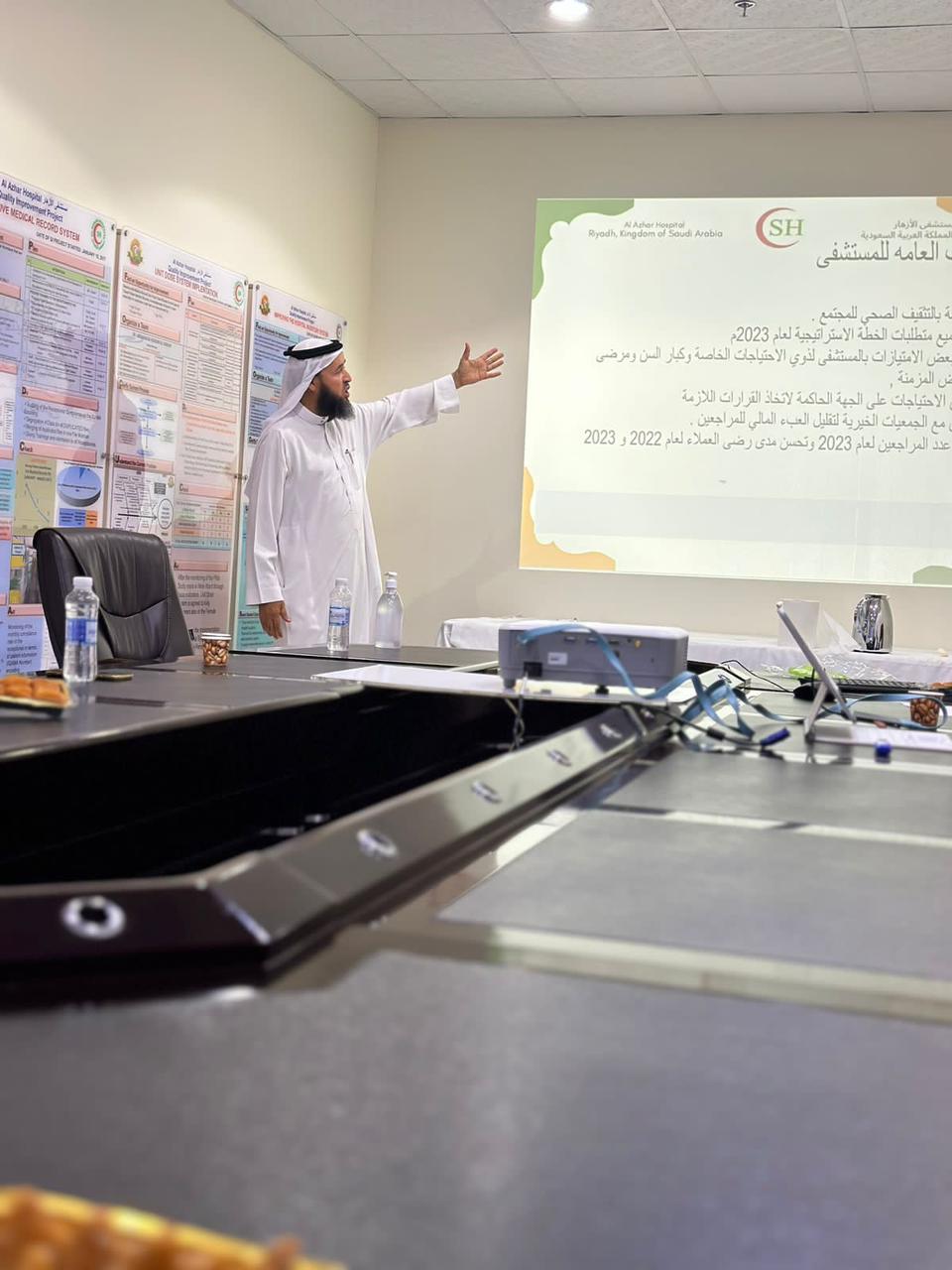وبعد ذلك ألقى مدير إدارة الجودة بمستشفى الأزهار الطبي الدكتور صالح باسم وتحدث من خلالها عن أهمية تطبيق الجودة في جميع الأعمال في ظل الدعم الكبير الذي تقدمه المملكة لكافة القطاعات ومنها القطاع الصحي، والذي نسعى من خلاله لتقليل مدة تقديم الخدمة العلاجية من لحظة دخوله المستشفى وتلقيه العلاج وبالتالي خروجه من المستشفى وهو بصحة وعافية من خلال الأرقام ورسوم بيانية توضح تطور ذلك من خلال المقارنات البيانية بين عام 2023 م وما سبقها من أعوام، وتطرق الدكتور عن آخر ما توصلوا له من تطوير وتميز في المستشفى في جميع النواحي والتي تصب في مصلحة المريض.