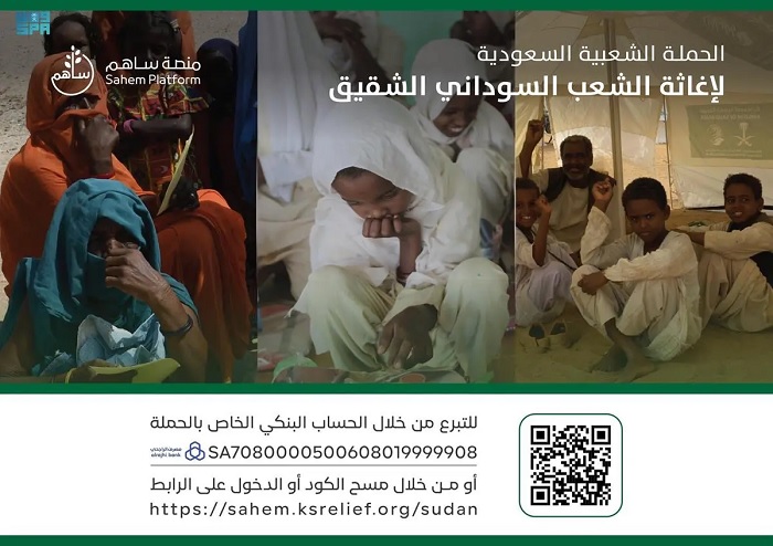 إنفاذاً لتوجيهات خادم الحرمين الشريفين الملك سلمان بن عبد العزيز آل سعود، وصاحب السمو الملكي الأمير محمد بن سلمان بن عبد العزيز آل سعود، ولي العهد رئيس مجلس الوزراء – حفظهما الله -، أطلق مركز الملك سلمان للإغاثة والأعمال الإنسانية، اليوم، الحملة الشعبية عبر منصة “ساهم” لمساعدة الشعب السوداني الشقيق.