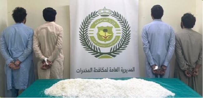 قبضت المديرية العامة لمكافحة المخدرات على (4) مقيمين من الجنسية الباكستانية بالمنطقة الشرقية، لترويجهم (24.38) كيلوجرام من مادة الميثامفيتامين المخدر (الشبو)، وجرى إيقافهم واتخاذ الإجراءات النظامية بحقهم، وإحالتهم إلى النيابة العامة.