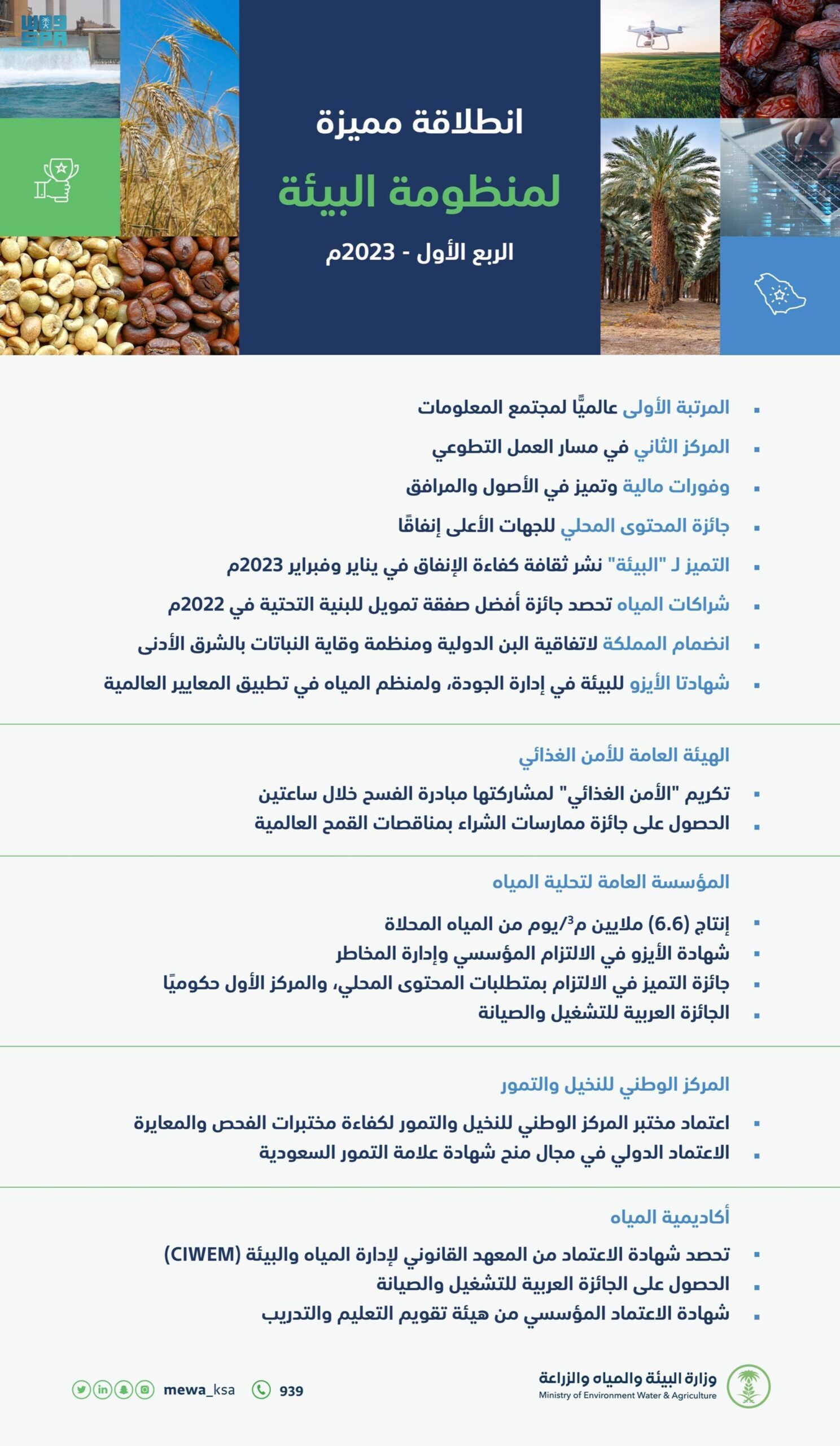 منجزات متواكبة مع مستهدفات رؤية المملكة لمنظومة البيئة والمياه والزراعة خلال الربع الأول من 2023م