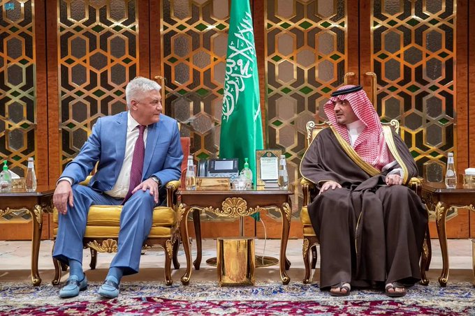 وكان في استقباله لدى وصوله مطار الملك خالد الدولي، صاحب السمو الملكي الأمير عبدالعزيز بن سعود بن نايف بن عبدالعزيز وزير الداخلية.