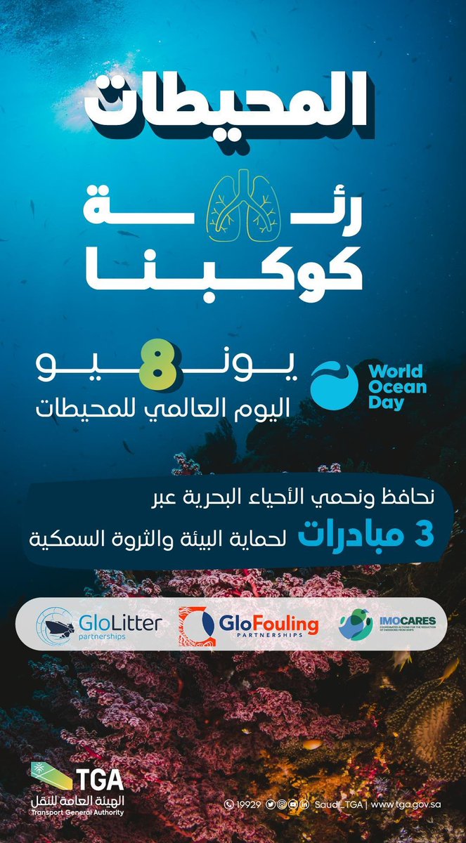 في اليوم العالمي للمحيطات.. الهيئة العامة للنقل تؤكد التزام المملكة بمبادراتها الثلاث للحفاظ على الحياة البحرية من خلال المنظمة البحرية العالمية IMO