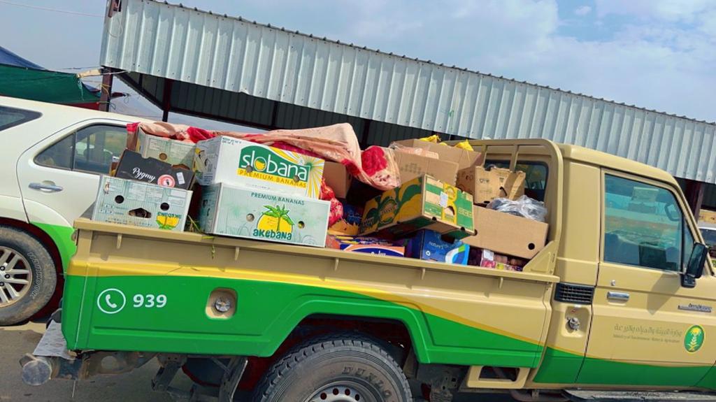 للأنظمة والتعليمات أثناء التفتيش على البسطات والعمالة بسوق الخميس الشعبي ، وتمت مصادرة 2 طن من الخضار والفواكه وجرى تسليمها الى جمعية الخيرية بنمرة لتسليمها الى الأسر الأكثر حاجة.