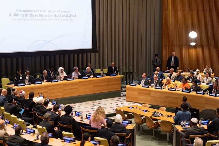 دشن معالي الأمين العام لرابطة العالم الإسلامي رئيس هيئة علماء المسلمين الدكتور محمد بن عبدالكريم العيسى، من مقر الأمم المتحدة بنيويورك، مبادرة “بناء جسور التفاهم والسلام بين الشرق والغرب”، بمشاركة معالي رئيس الجمعية العمومية بالأمم المتحدة سابا كوروشي، ومعالي الأمين العام للأمم المتحدة ممثلاً في نائبته أمينة محمد، ومعالي المبعوث السامي لتحالف الحضارات ميجيل موراتينوس، ومعالي المستشار الخاص لتعدد الثقافات والأديان بالأمم المتحدة آرثر ويلسون، وسط حضور رفيعٍ لكبار قيادات الأمم المتحدة، وممثلي البعثات الدائمة للدول الأعضاء لدى المنظمة الدولية، والزعماء الدينيين من مختلف الأطياف والهيئات ومنظمات المجتمع المدني والأوساط الأكاديمية.