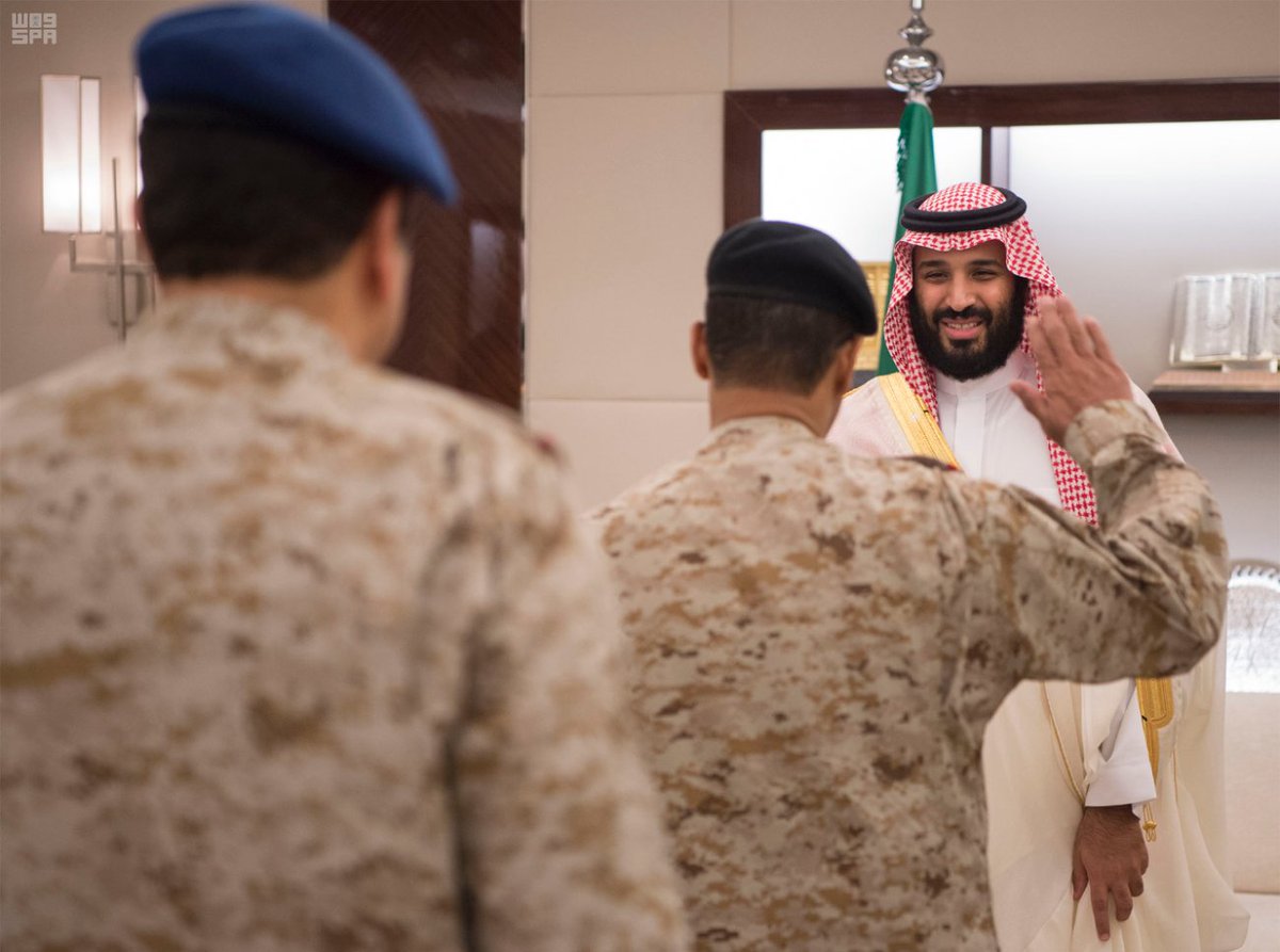 ونقل ولي العهد خلال الاستقبال تحيات خادم الحرمين الشريفين الملك سلمان بن عبد العزيز آل سعود القائد الأعلى لكافة القوات العسكرية – حفظه الله – وتهانيه لهم بعيد الفطر المبارك.