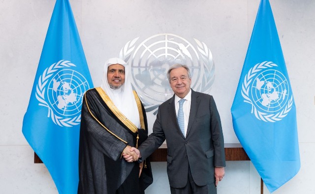 وذكر الدكتور العيسى تأكيد الأمين العام للأمم المتحدة دعمه الكامل لعمل الرابطة، ولا سيما في تعزيز قيم الاعتدال حول العالم، وأن المنظمة الدولية تعمل على محاربة الإسلاموفوبيا وكراهية الآخر، وأن الأمين العام للأمم المتحدة أكد أن “هناك صورة غير حقيقية ضد الإسلام، وأن مواقع التواصل الاجتماعي زادت من الكراهية بسبب نشر الكثير من الأكاذيب على حساب المعلومات الصحيحة”، وقال غوتيرش إن للقيادات الدينية دوراً كبيراً في دعم السلام والوئام، مؤكداً أن الأديان ليست سبب الحروب في العالم، بل هي ما يجمع الناس، لافتاً إلى أن الحضارات منها ما بقي ومنها ما هو قد ذهب، ولكن الرؤية الواضحة التي يجب العمل عليها هي جمع الناس لعمل بعضهم مع بعض ومقاومة الجهود التي لا تريد ذلك.