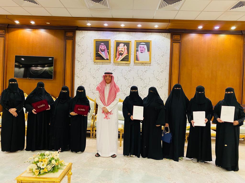 كرّم سعادة محافظ رابغ خالد بن مبيريك بالمحافظة اليوم طالبات المملكة وهن بدور بدر عبدالقادر الجهني وريم هليل محمد الحربي وريما عطية حامد المحمدي