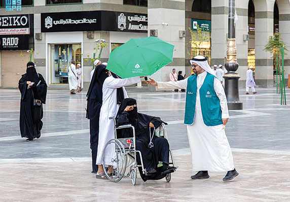 قامت وكالة الرئاسة العامة لشؤون المسجد النبوي ممثلةً في وكالة العلاقات العامة والتواصل المؤسسي والشراكات المجتمعية من خلال الإدارة العامة لشؤون الزائرين والتواصل المؤسسي بتوزيع مظلات على الزوار والقاصدين، وذلك في ساحات المسجد النبوي.