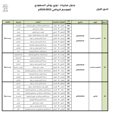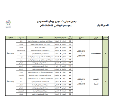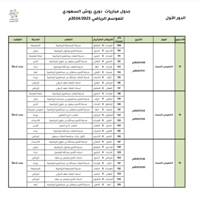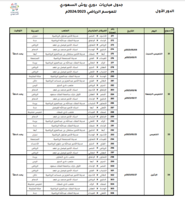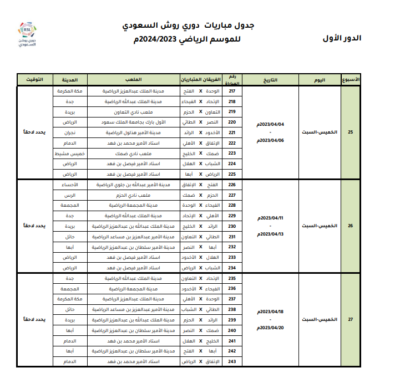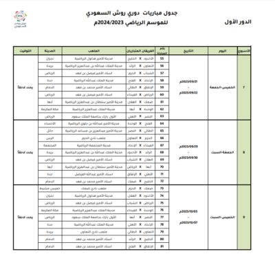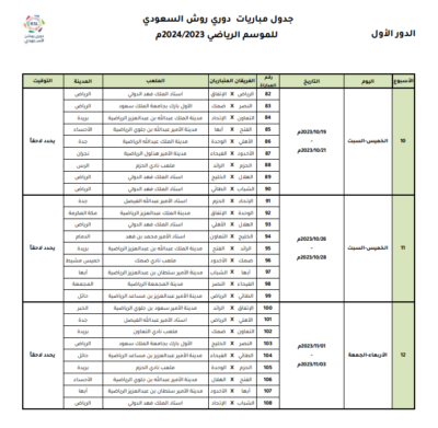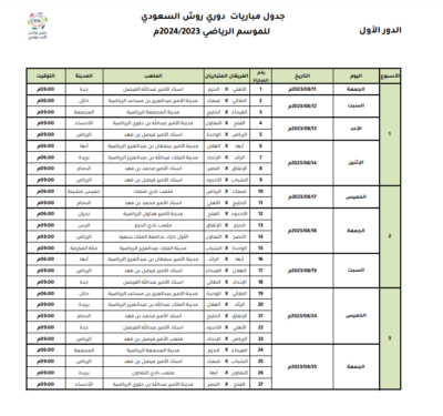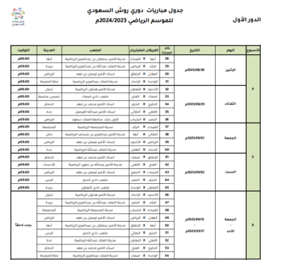 اعتمدت رابطة الدوري السعودي للمحترفين جدول مباريات دوري روشن السعودي للموسم الرياضي 2023 – 2024م، وتم تحديد مواعيد المباريات للجولات الخمس الأولى من المسابقة، على أن يتم تحديد مواعيد الجولات المتبقية بعد صدور قرعة دور المجموعات من بطولة دوري أبطال آسيا 2023-2024، والتي يشارك بها عددًا من الأندية السعودية.