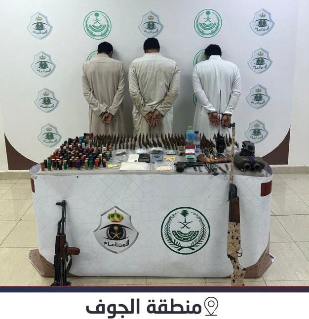 قبضت شرطة منطقة الجوف على (3) مواطنين بمحافظة القريات لترويجهم مادة الإمفيتامين المخدر ومادة الميثامفيتامين المخدر (الشبو) ومادة الحشيش المخدر وأقراصًا خاضعة لتنظيم التداول الطبي، وضبط بحوزتهم أسلحة نارية وبيضاء وذخيرة حية وهواتف متنقلة ومبالغ مالية، وجرى إيقافهم، واتخاذ الإجراءات النظامية بحقهم وإحالتهم إلى جهة الاختصاص.