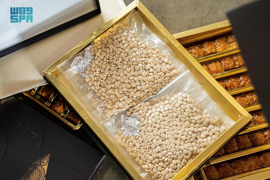 وأوضحت الهيئة أنه وردت إرسالية حلويات عبارة عن (بقلاوة) وعند خضوعها للإجراءات الجمركية، والكشف عليها عبر التقنيات الأمنية، عُثر على تلك الكمية من الحبوب مُخبأة أسفل طبقات (البقلاوة)، مضيفةً أنه بعد إتمام عملية الضبط، جرى التنسيق مع المديرية العامة لمكافحة المخدرات لضمان القبض على مستقبلي المضبوطات داخل المملكة، حيث تم القبض عليهما وهما شخصان.