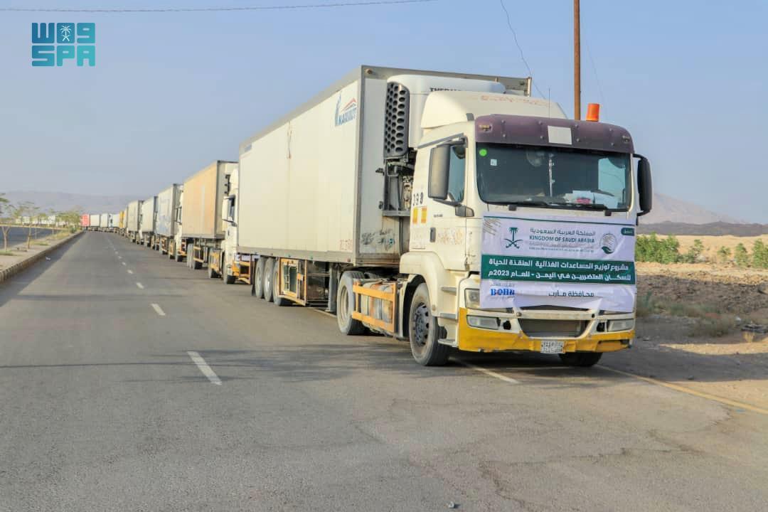 وصلت إلى اليمن عبر منفذ الوديعة الحدودي 100 شاحنة إغاثية مقدمة من مركز الملك سلمان للإغاثة والأعمال الإنسانية، تحمل على متنها 30.000 سلة غذائية، استعدادًا لتدشين مشروع المساعدات الغذائية للأسر النازحة والأكثر احتياجًا في اليمن للعام 2023م.