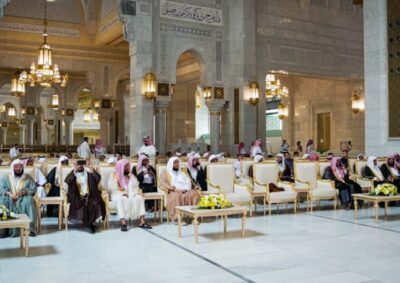 افتتح معالي وزير الشؤون الإسلامية والدعوة والإرشاد الشيخ الدكتور عبداللطيف بن عبدالعزيز آل الشيخ المشرف العام على مسابقة القرآن الكريم المحلية والدولية، اليوم السبت العاشر من شهر صفر 1445هـ، التصفيات النهائية لمسابقة الملك عبدالعزيز الدولية لحفظ القرآن الكريم وتلاوته وتفسيره في دورتها الـ(43) التي تنظمها الوزارة في رحاب المسجد الحرام، بمشاركة 166 متسابقاً يمثلون 117 دولة، حيث تستمر التصفيات النهائية للمسابقة ستة أيام على فترتين صباحية ومسائية.