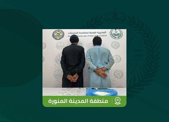 مكافحة المخدرات تقبض على مقيمين بالمدينة المنورة لترويجهما مادة الميثامفيتامين المخدر