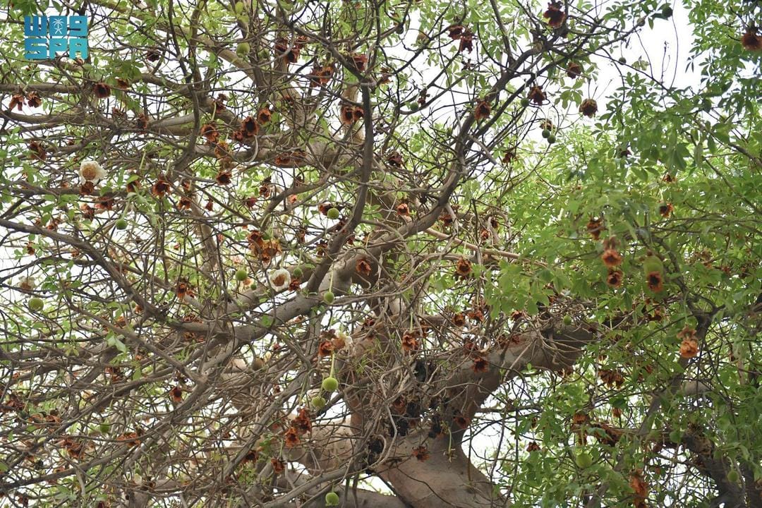 ووقفت “واس” على شجرة “الباوباب” المعمرة البالغ قطر جذعها ما يقارب عشرة أمتار، وبأغصانها الممتدة لتشكل ظلاً ظليلًا لعابري السبيل ومتنفسًا للأهالي والزوار وعلماً للمكان، لتسرد فصلاً من فصول حياة هذه الشجرة المعمرة، التي تبدو للقادم إليها كأنها أسطورة بيئية خالدة، فهي تنمو بارتفاعات عالية في سهول السافانا الأفريقية، ويصل أطوالها لما يقارب 100 قدم