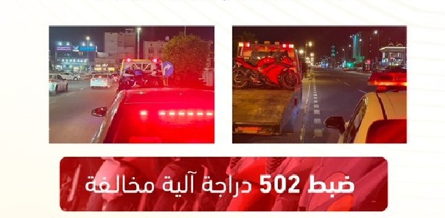 وأوضح المرور السعودي أن الحملة ضبطت 502 دراجة آلية مخالفة، وذلك في إطار الحملات الميدانية المستمرة من إدارات المرور بالمناطق.