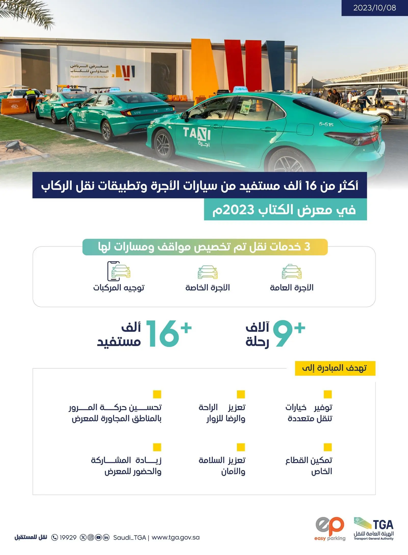 هيئة النقل: أكثر من 16 ألف مستفيد من سيارات الأجرة في معرض الكتاب 2023م