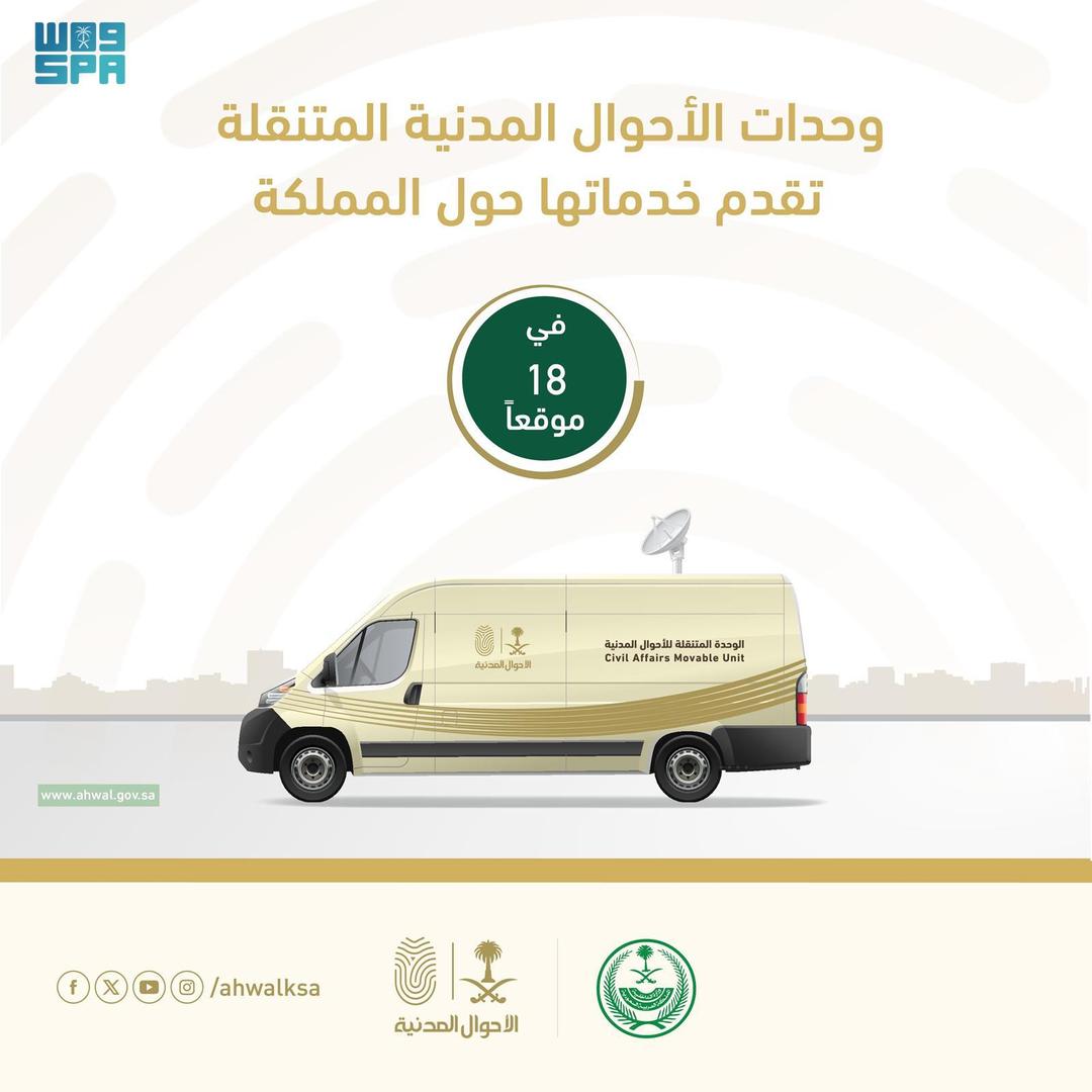 وحدات الأحوال المدنية المتنقلة تقدم خدماتها في (15) موقعًا حول المملكة