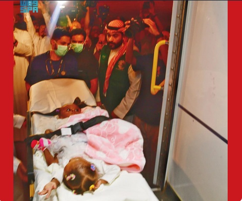 إنفاذاً لتوجيهات خادم الحرمين الشريفين الملك سلمان بن عبدالعزيز آل سعود وصاحب السمو الملكي الأمير محمد بن سلمان بن عبدالعزيز ولي العهد رئيس مجلس الوزراء ـ حفظهما الله ـ وصل الليلة إلى مطار الملك خالد الدولي بالرياض التوأم السيامي النيجيري “حسنة وحسينة” برفقة والديهما، قادمين من جمهورية نيجيريا عبر طائرة الإخلاء الطبي الجوي السعودي بوزارة الدفاع، حيث نُقل التوأم فور وصولهما إلى مستشفى الملك عبدالله التخصصي للأطفال بوزارة الحرس الوطني؛ لدراسة حالتها والنظر في إمكانية إجراء عملية فصلهما.