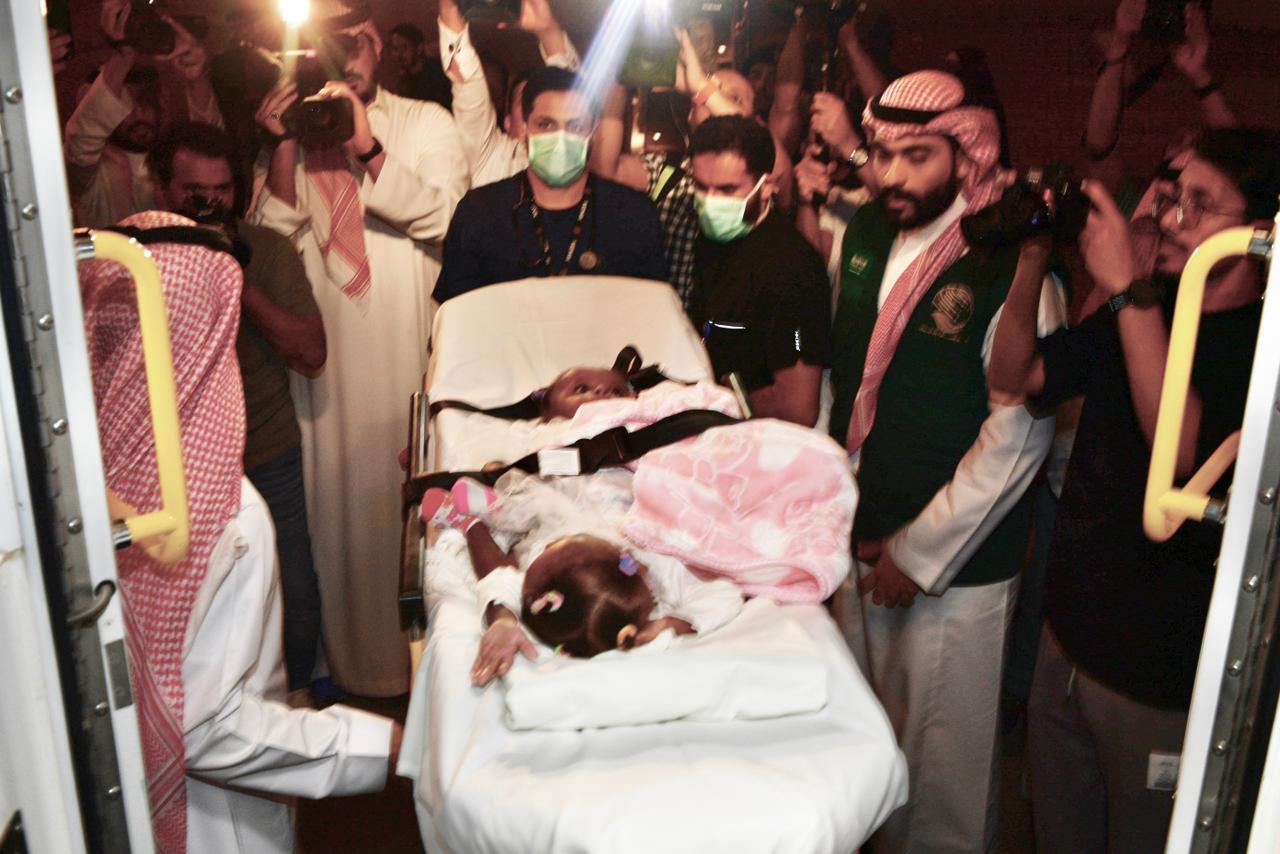 إنفاذاً لتوجيهات خادم الحرمين الشريفين الملك سلمان بن عبدالعزيز آل سعود وصاحب السمو الملكي الأمير محمد بن سلمان بن عبدالعزيز ولي العهد رئيس مجلس الوزراء ـ حفظهما الله ـ وصل الليلة إلى مطار الملك خالد الدولي بالرياض التوأم السيامي النيجيري “حسنة وحسينة” برفقة والديهما، قادمين من جمهورية نيجيريا عبر طائرة الإخلاء الطبي الجوي السعودي بوزارة الدفاع، حيث نُقل التوأم فور وصولهما إلى مستشفى الملك عبدالله التخصصي للأطفال بوزارة الحرس الوطني؛ لدراسة حالتها والنظر في إمكانية إجراء عملية فصلهما.