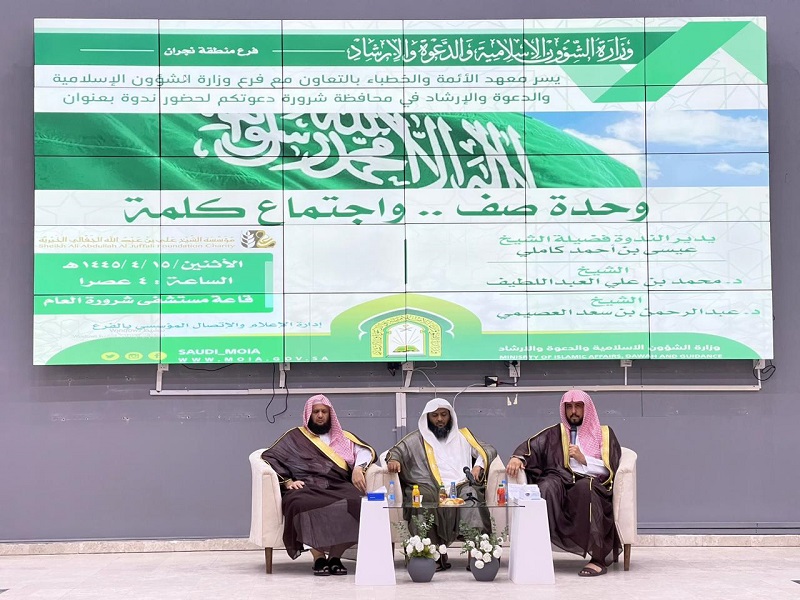 اختتمت وزارة الشؤون الإسلامية والدعوة والإرشاد، ممثلة بمعهد الأئمة والخطباء، مبادرة “وحدة الصف واجتماع الكلمة”، والتي تم تنفيذها بالتزامن مع اليوم الوطني 93 للمملكة بمختلف مناطق المملكة واستهدفت منسوبي المساجد من الأئمة والمؤذنين والخطباء والمراقبين والمراقبات، حيث دشنت من قبل أمراء المناطق وانطلقت أولى فعالياتها بالمنطقة الشرقية، واختتمت يوم أمس في منطقة الرياض.