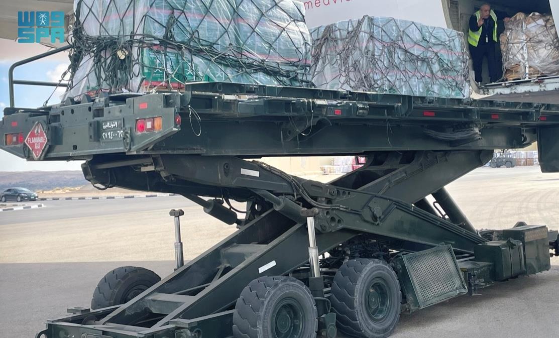 وصلت إلى مطار العريش الدولي بجمهورية مصر العربية اليوم، الطائرة الإغاثية السعودية الحادية عشرة، التي يسيرها مركز الملك سلمان للإغاثة، وتحمل على متنها مساعدات إغاثية متنوعة شملت مواد غذائية وإيوائية وطبية بوزن إجمالي يبلغ 35 طناً، تمهيداً لنقلها إلى المتضررين داخل قطاع غزة، وذلك ضمن الحملة الشعبية لإغاثة الشعب الفلسطيني الشقيق في قطاع غزة، والتي وجه بها خادم الحرمين الشريفين الملك سلمان بن عبدالعزيز آل سعود وصاحب السمو الملكي الأمير محمد بن سلمان بن عبدالعزيز ولي العهد رئيس مجلس الوزراء -حفظهما الله-.