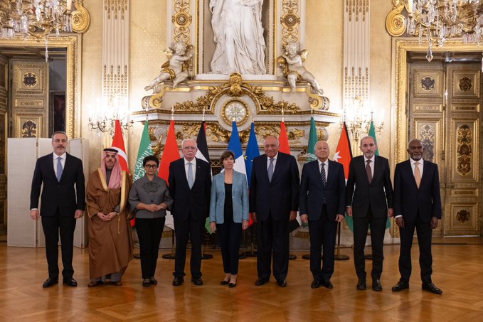 عقدت اللجنة الوزارية المكلفة من القمة العربية الإسلامية المشتركة غير العادية، اليوم الأربعاء 22 نوفمبر 2023، برئاسة صاحب السمو الأمير فيصل بن فرحان بن عبدالله وزير خارجية المملكة العربية السعودية، اجتماعاً رسمياً مع فخامة الرئيس إيمانويل ماكرون رئيس الجمهورية الفرنسية، وذلك في العاصمة الفرنسية باريس، وشارك في الاجتماع أعضاء اللجنة الوزارية، وهم معالي نائب رئيس الوزراء وزير الخارجية وشؤون المغتربين في المملكة الأردنية الهاشمية أيمن الصفدي، ومعالي وزير خارجية جمهورية مصر العربية سامح شكري، ومعالي وزير الخارجية والمغتربين الفلسطيني رياض المالكي، ومعالي وزير خارجية جمهورية تركيا هاكان فيدان، ومعالي وزيرة خارجية جمهورية إندونيسيا ريتنو مارسودي، ومعالي وزير خارجية جمهورية نيجيريا الاتحادية السيد يوسف مايتاما توجار، ومعالي الأمين العام لجامعة الدول العربية أحمد أبو الغيط، وبحضور معالي وزيرة خارجية الجمهورية الفرنسية كاثرين كولونا.