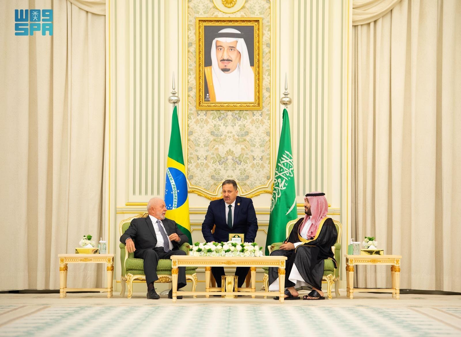 واستقبل صاحب السمو الملكي الأمير محمد بن سلمان بن عبد العزيز آل سعود ولي العهد رئيس مجلس الوزراء، فخامة رئيس جمهورية البرازيل الاتحادية السيد/ لويس إيناسيو لولا دا سيلفا، في قصر اليمامة بالرياض. ونقل سموه لفخامته تحيات خادم الحرمين الشريفين الملك سلمان بن عبد العزيز آل سعود، وتمنياته لفخامته بموفور الصحة والعافية، ولجمهورية البرازيل الاتحادية وشعبها الصديق المزيد من التقدم والنماء. وطلب فخامته نقل تحياته وأصدق تمنياته إلى خادم الحرمين الشريفين الملك سلمان بن عبد العزيز آل سعود، بدوام الصحة والعافية، وبمزيد من التقدم والرخاء للشعب السعودي الصديق.