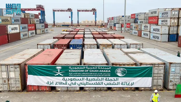 فريق مركز الملك سلمان للإغاثة يستقبل في ميناء بورسعيد المصري الباخرة الثالثة من شحنات الجسر البحري السعودي لإغاثة المتضررين في غزة