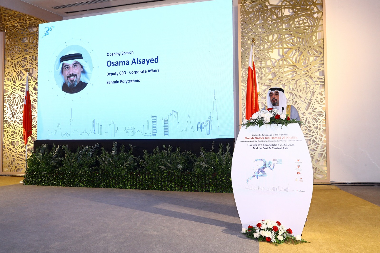 تحت رعاية سمو الشيخ ناصر بن حمد آل خليفة، ممثل جلالة الملك للأعمال الإنسانية وشؤون الشباب في البحرين، وبالتعاون مع جامعة البحرين وجامعة بوليتكنك البحرين، افتتحت هواوي اليوم جولة المنافسات النهائية لمسابقة هواوي لتقنية المعلومات والاتصالات الإقليمية 2023-2024 في جامعة بوليتكنك البحرين.