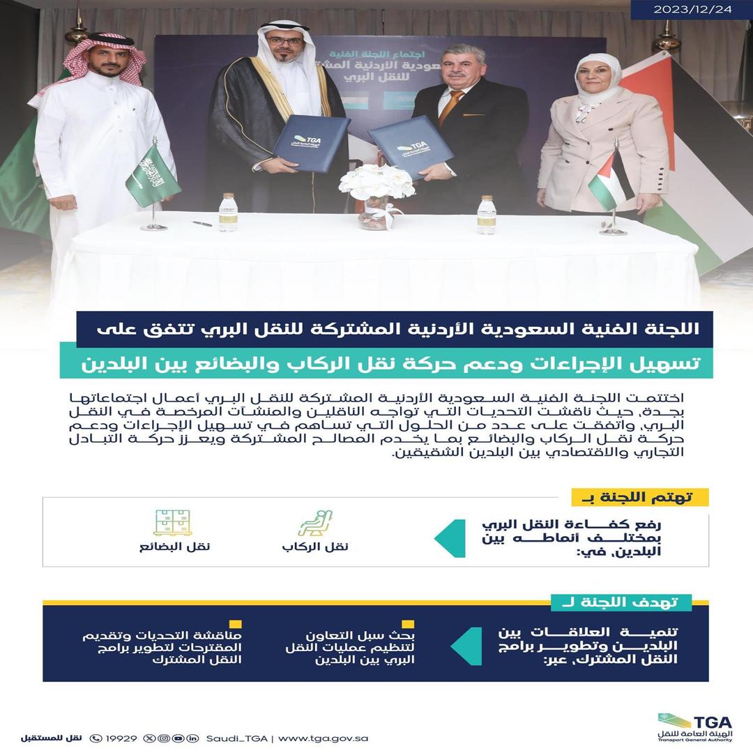 اللجنة الفنية السعودية الأردنية المشتركة للنقل البري تتفق على دعم حركة نقل الركاب والبضائع بين البلدين