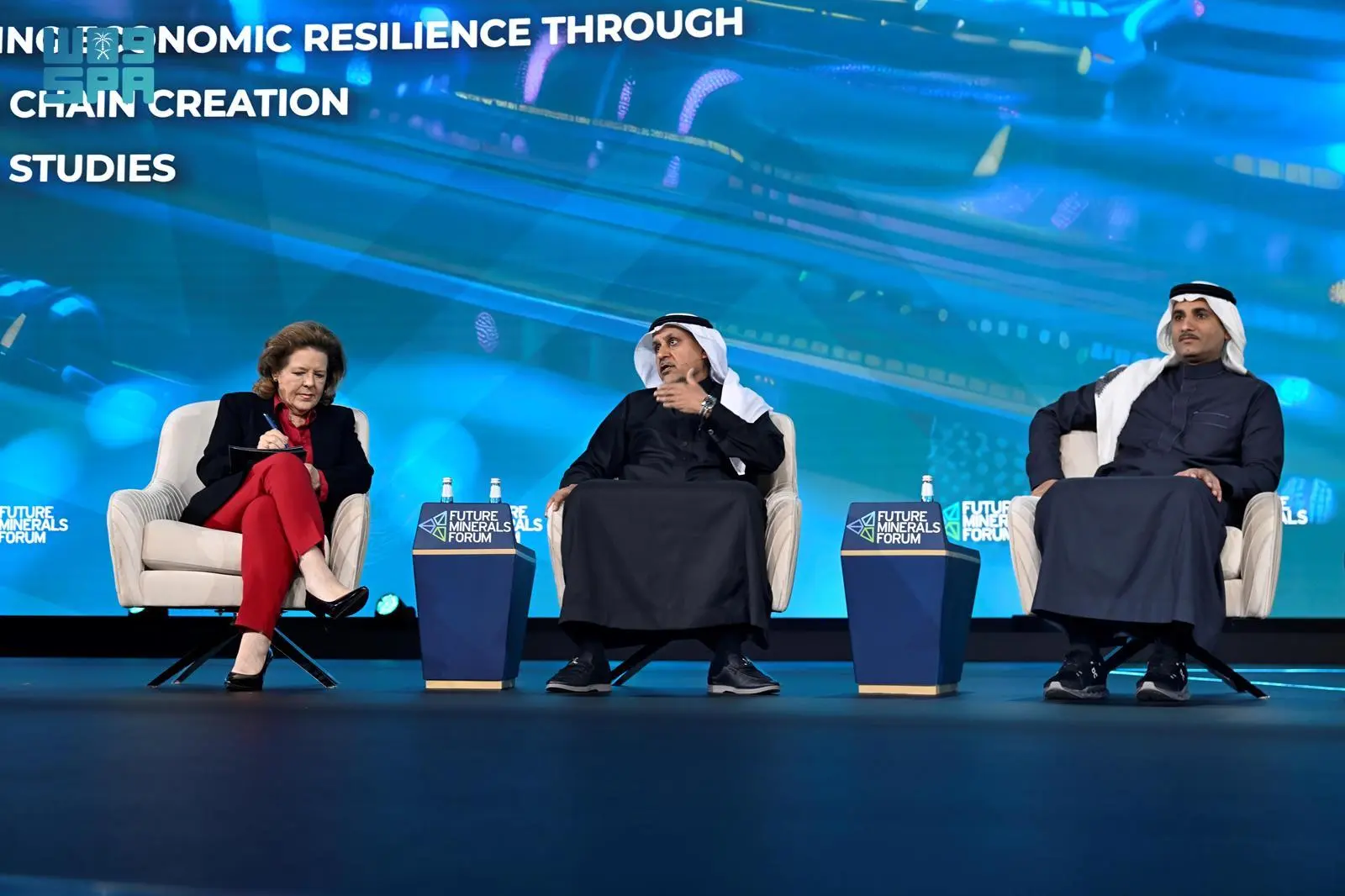 وأشار في الجلسة الحوارية ضمن النسخة الثالثة من مؤتمر التعدين الدولي في الرياض، إلى الاستثمار المستدام في المدن الصناعية ومضاعفة القدرات التشغيلية وجذب الاستثمارات واستكمال سلسلة القيمة في عدد من القطاعات الإستراتيجية.