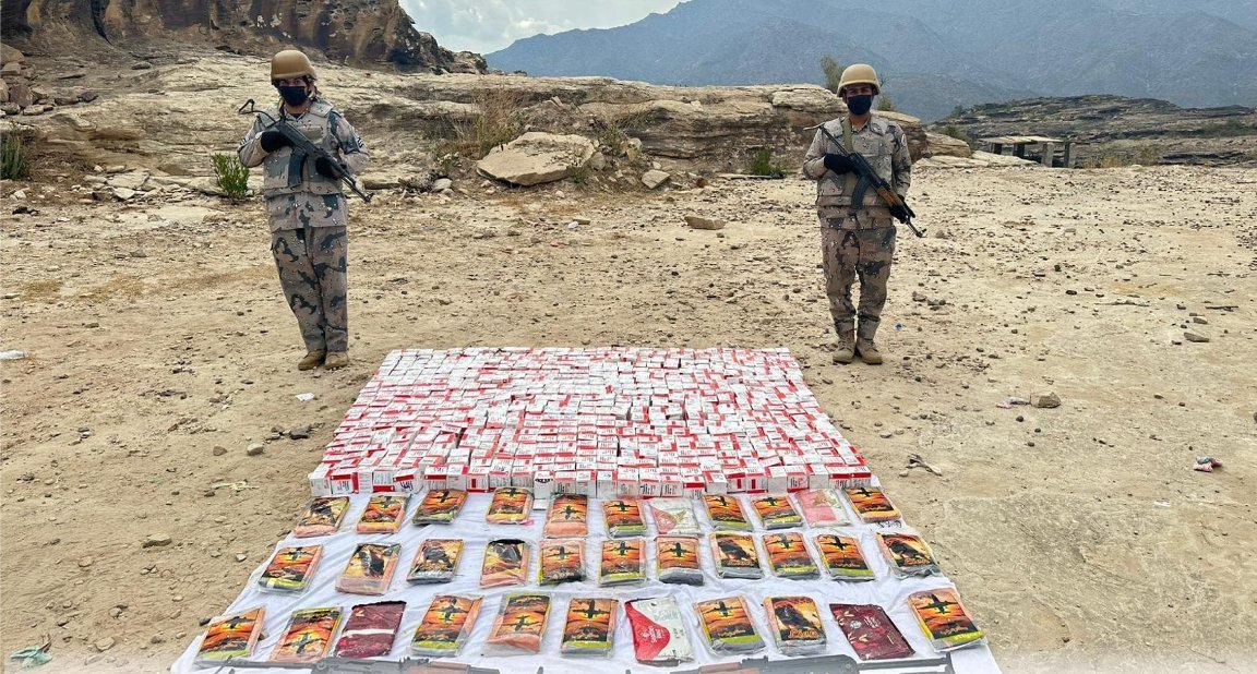 حرس الحدود بعسير يحبط تهريب (7350) قرصًا خاضعًا لتنظيم التداول الطبي و(32) كيلوجرامًا من مادة الحشيش المخدر