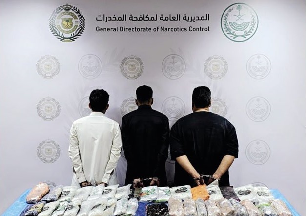 قبضت المديرية العامة لمكافحة المخدرات على (3) مواطنين بمحافظة جدة لترويجهم (43) كيلوجرامًا من مادة الحشيش المخدر، وجرى إيقافهم واتخاذ الإجراءات النظامية بحقهم, وإحالتهم إلى النيابة العامة.