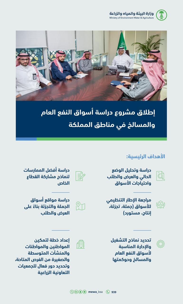 أطلقت وزارة البيئة والمياه والزراعة مشروع دراسة أسواق النفع العام والمسالخ في جميع مناطق المملكة، بناءً على دليل القواعد العامة المنظمة لعمل أسواق النفع العام وضوابط أعمال مقدمي الخدمة، واستنادًا إلى نظام الزراعة ولائحته التنفيذية، لتنظيم وتطوير الأسواق، وتلبية احتياجاتها، ورفع كفاءة وفعالية الرقابة والتفتيش وتهيئة وتحسين بيئة العمل.