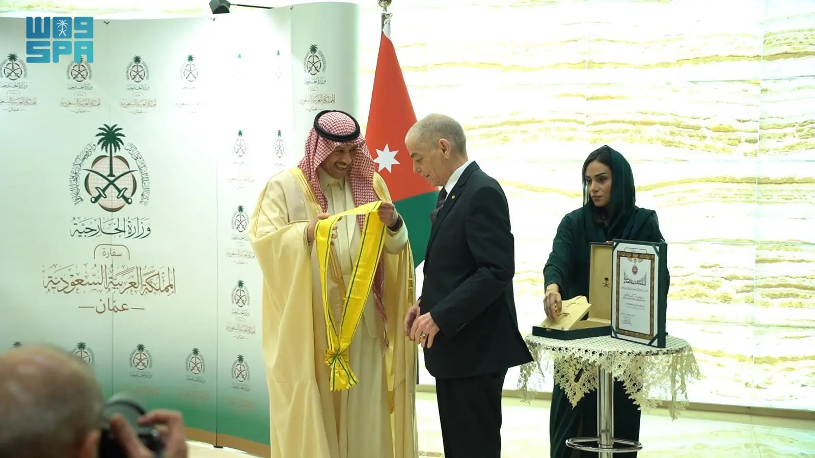 السفير السديري يقلد السفير الأردني السابق لدى المملكة وشاح الملك عبدالعزيز من الطبقة الثانية والبراءة الخاصة
