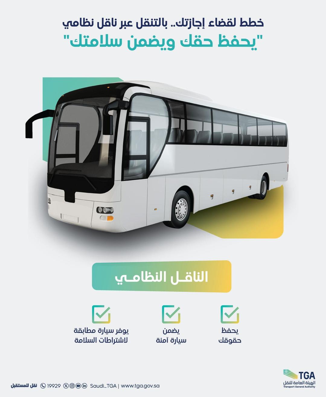 يذكر أن الهيئة العامة للنقل تطلق التوصيات والإرشادات الساعية لسلامة الركاب وتحقيق نقل آمن للركاب، لينعموا بخدمات نقل ممكنة ومستدامة مما يسهم في تحقيق أهداف الاستراتيجية الوطنية للنقل والخدمات اللوجستية.