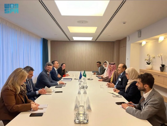 وجرى خلال اللقاء، بحث سبل تعزيز التعاون بين المملكة والاتحاد الأوروبي، وتبادل وجهات النظر حول القضايا الإقليمية وجهود المملكة الرامية للحفاظ على أمن واستقرار المنطقة.