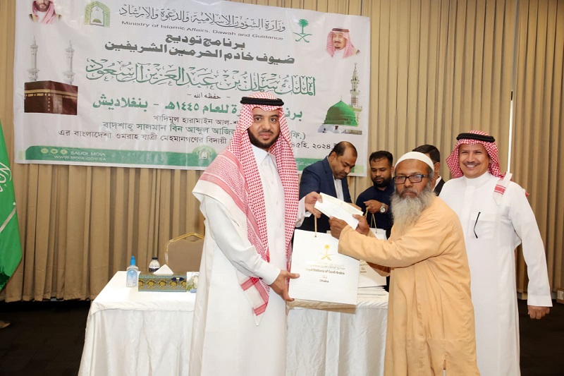 نفذت عدداً من سفارات خادم الحرمين الشريفين حفل توديع للأشخاص المستضافين ضمن برنامج ضيوف خادم الحرمين الشريفين للحج والعمرة والزيارة لهذا العام ١٤٤٥هـ، الذي تنظمه وزارة الشؤون الإسلامية والدعوة والإرشاد، والبالغ عددهم ٢٥٠ شخصاً يمثلون الدفعة الرابعة والأخيرة من العدد الكلي البالغ الف شخص لهذا العام والذي صدرت موافقة خادم الحرمين الشريفين الملك سلمان بن عبدالعزيز على استضافتهم، وذلك بحضور عدداً من السفراء ومدراء الملحقيات الدينيّة ومسؤلين السفارات في هذه الدول.