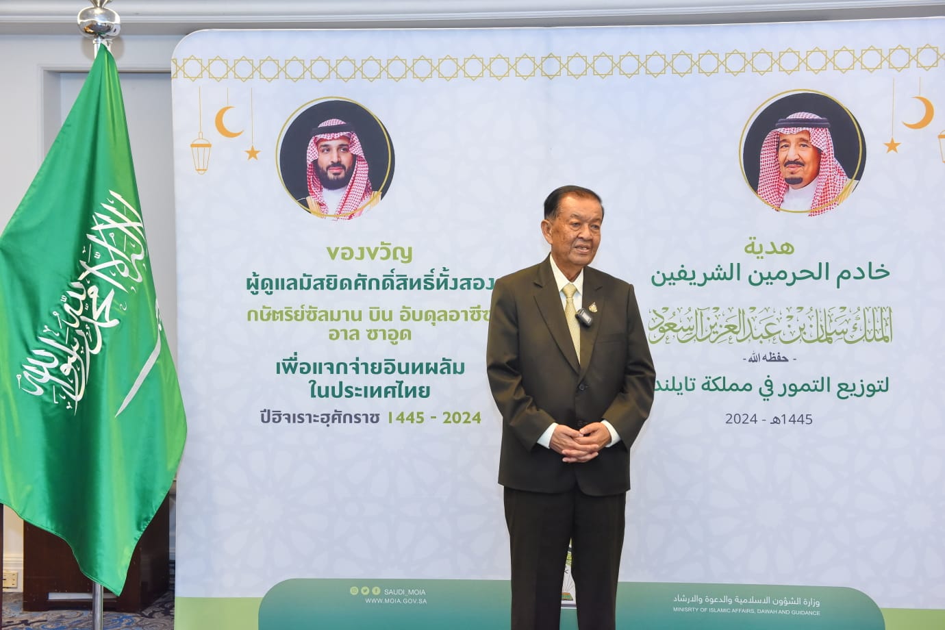 وفي ختام تصريحه، قال رئيس البرلمان التايلندي: “ما لي أرى في هذا الشهر إلا الخيرات والبركات، وهذا شهر الصيام وشهر القرآن، وفي نظري أنه ليس بأمر ذاتي وإنما أمر رباني واجتماعي لتمكين الدعم المادي والمعنوي من ناحية، والتعبيري والمعرفي المنبثق من مشاعر الفقراء والمساكين والمحتاجين من ناحية أخرى”.. مقدماً شكره لمعالي وزير الشؤون الإسلامية والدعوة والإرشاد على متابعته في تنفيذ برامج توزيع التمور وتفطير الصائمين في مملكة تايلند.