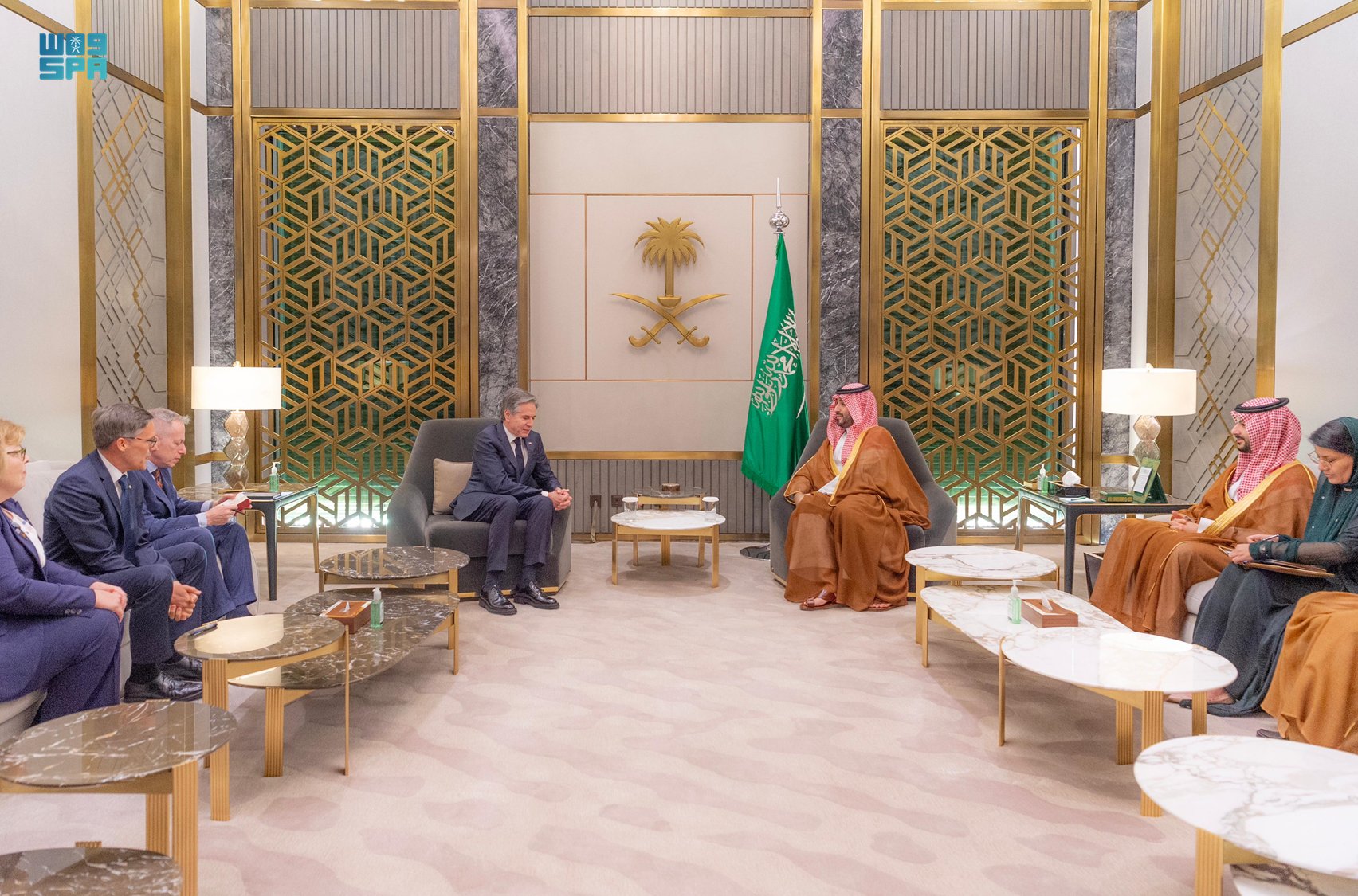 استقبل صاحب السمو الأمير فيصل بن فرحان بن عبدالله وزير الخارجية، في جدة، اليوم، معالي وزير خارجية الولايات المتحدة الأمريكية أنتوني بلينكن.