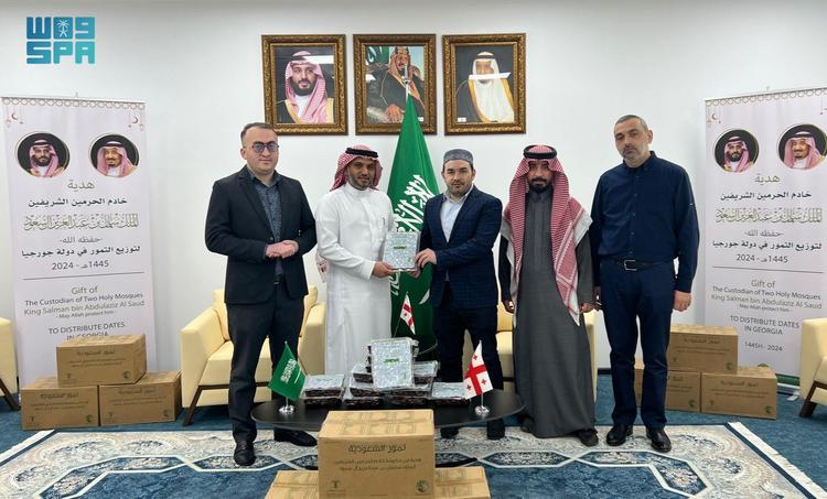دشّنت وزارة الشؤون الإسلامية والدعوة والإرشاد، اليوم، برنامج هدية خادم الحرمين الشريفين من التمور لمسلمي جمهورية جورجيا، وذلك في مقر سفارة المملكة بالعاصمة تبليسي، بحضور القائم بالأعمال حسين بن إبراهيم بكري، والمدير التنفيذي في إدارة مسلمي جورجيا ريسان جوجيتيدزه.