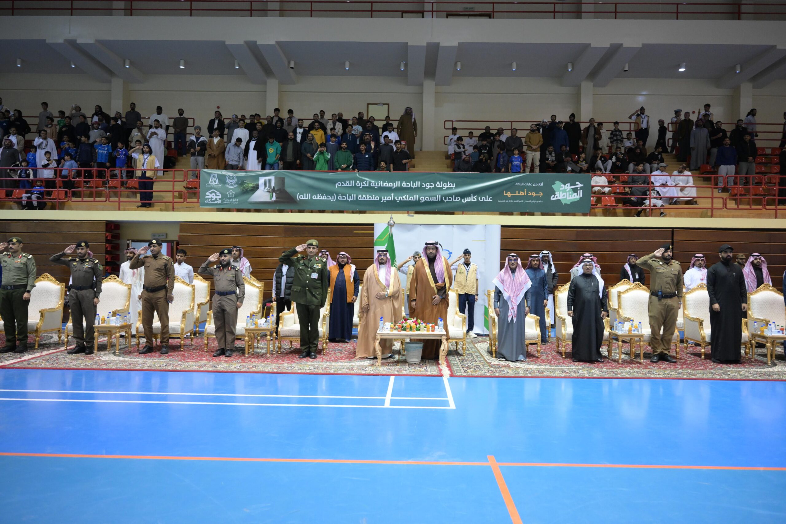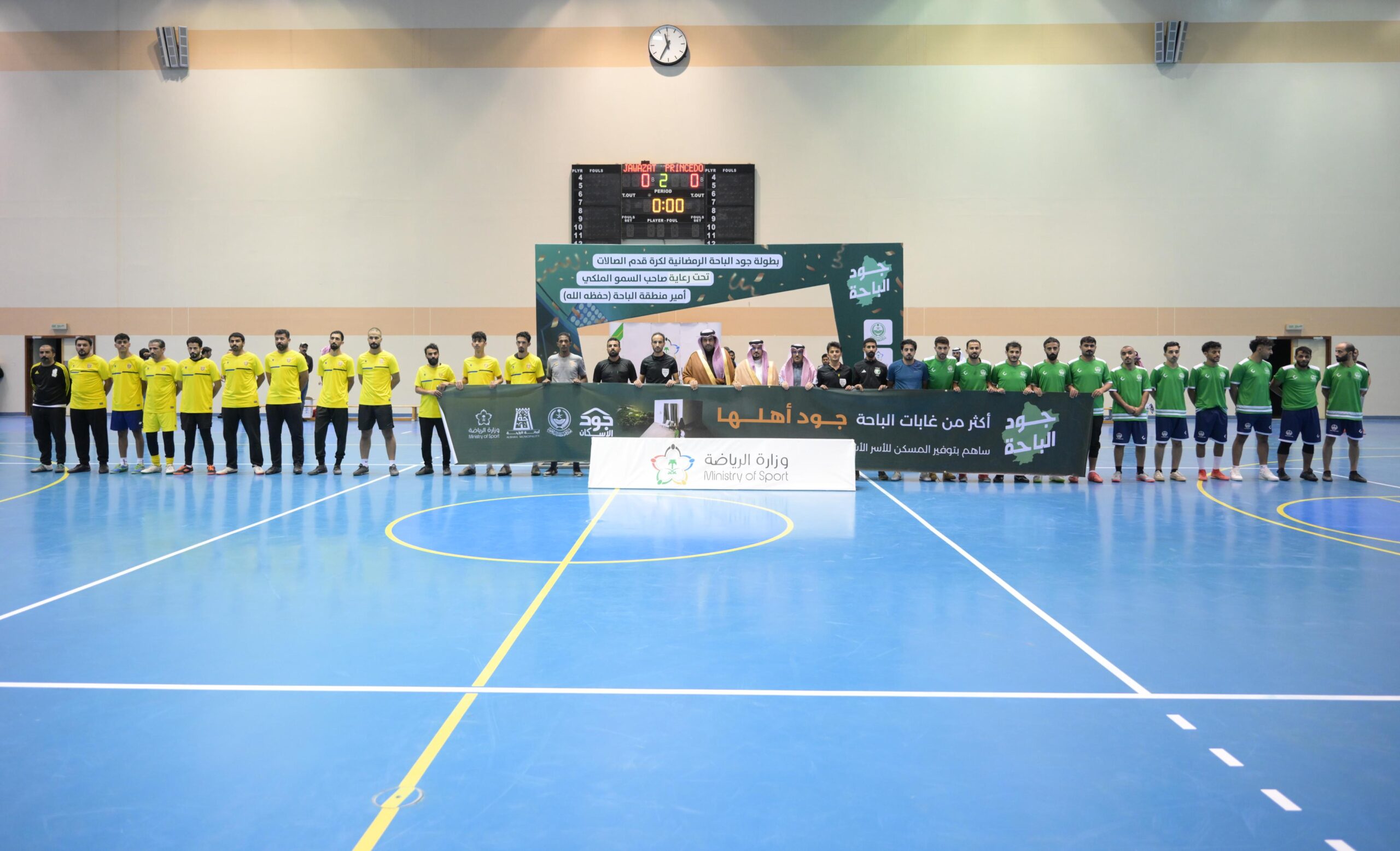 تحت رعاية صاحب السمو الملكي الامير الدكتور حسام بن سعود بن عبدالعزيز امير منطقة الباحة اختتمت منافسات بطولة دوري كأس جود الباحة لكرة قدم الصالات للإدارات الحكومية والتي نظمها فرع وزارة الرياضة بحضور سعادة وكيل إمارة منطقة الباحة للشؤون التنموية المهندس جديع القحطاني وعدد من قيادات الجهات الحكومية، حيث وجه سمو أمير منطقة الباحة لفرع وزارة الرياضة بتمسية البطولة في نسختها الثالثه بكأس جود الباحة تزامنا مع الحملة الوطنية لجود المناطق والتي انطلقت في مع بداية شهر رمضان المبارك لتوفير السكن للاسر الأشد حاجة في جميع المناطق وقد جمعت المباراة النهائية فريق أمارة الباحة وفريق جوازات منطقة الباحة .