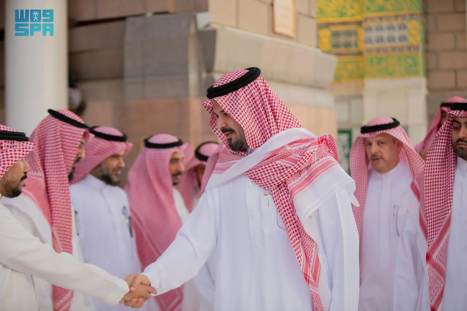 أمير منطقة المدينة المنورة يزور الهيئة العامة للعناية بشؤون المسجد الحرام والمسجد النبوي ويشارك منسوبيها الإفطار في المسجد النبوي