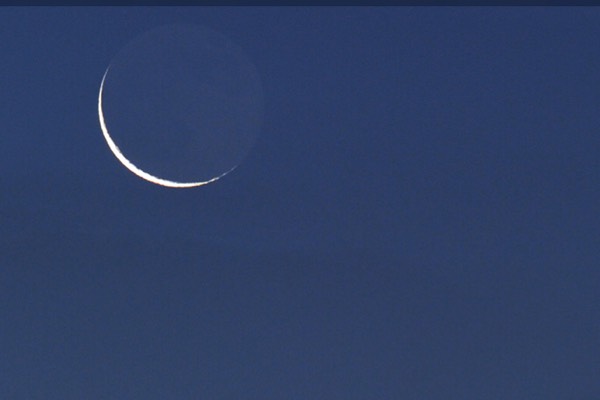 وأشار إلى أنه خلال بضع ليالٍ سيلاحظ أن الجزء غير المضاء من سطح القمر يتوهج بنور خافت عبارة عن ضوء الشمس المنعكس عن الأرض والساقط على القمر.