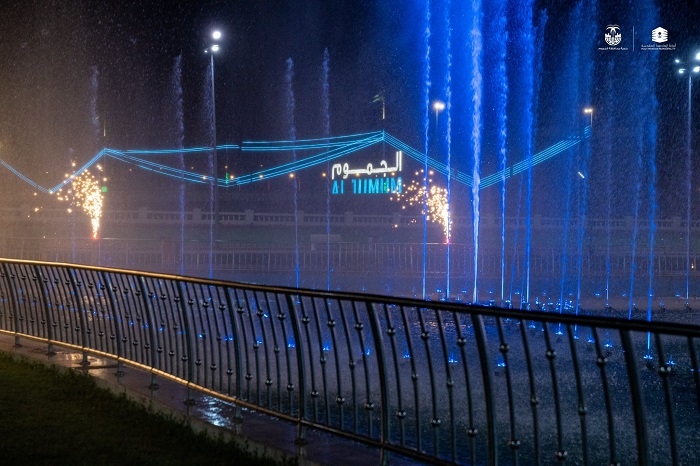 وبيّنت بلدية محافظة الجموم أن المشروع يأتي ضمن مبادرة “أنسنة المدن وتحسين جودة الحياة”، التي تعد إحدى مستهدفات رؤية المملكة 2030م، لافتة إلى أن النافورة التفاعلية الجديدة تشكل معلما من معالم المحافظة، وتأتي ضمن مشروع متنزه الشهداء العام بمحافظة الجموم، حيث تبلغ مساحة النافورة 1800 متر مربع وارتفاعها من 4 أمتار إلى 13 متراً، كما يضم المنتزه العديد من وسائل الترفيه الحديثة والملاعب وجزيرة مائية وجلسات للزوار، وعدد (26) من الحاضنات البلدية لدعم الأسر المنتجة، وغيرها من المرافق، كما يستوعب طاقة استيعابية لعدد كبير من الزوار.