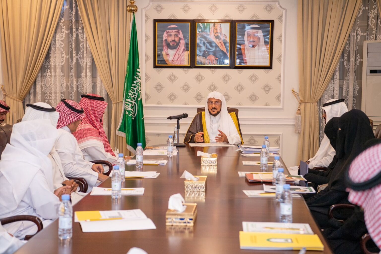 ونوه معاليه في بداية الاجتماع بالدعم الذي تجده الوزارة من القيادة الرشيدة -أيدها الله -لتحقق أهدافها ورسالتها بما يتسق مع رسالة المملكة في خدمة الإسلام والمسلمين وبيوت الله ومرتاديها، والدعوة إلى الله وفق ما جاء في الكتاب والسنة، ونفع الناس وتبصيرهم وفق المنهج الوسطي المعتدل، ونبذ التطرف والتصدي للغلو. واستعرض مدير عام الإدارة -خلال الاجتماع-أبرز منجزات الإدارة حيث بين أنه تم خلال الأربع سنوات الماضية توظيف أكثر من 6000 الآف موظف وموظفة ما بين إمام ومؤذن ومراقب ومراقبة ودعاة وداعيات وحراس وحارسات أمن، وذلك ضمن الجهود التي تسعى الوزارة لتحقيقها لمواكبة توجيهات القيادة الرشيدة في توظيف الكفاءات من أبناء وبنات الوطن.
